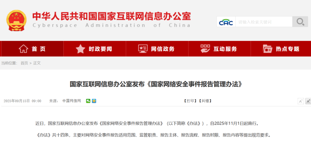 三十分鐘生死考驗:網(wǎng)絡(luò)安全事件上報新規(guī)如何應(yīng)對? http://m.ailedi.com.cn/?p=22468 http://m.ailedi.com.cn/?p=22468#respond Wed, 17 Sep 2025 02:32:42 +0000 http://m.ailedi.com.cn/?p=22468 國家互聯(lián)網(wǎng)信息辦公室近日發(fā)布了《國家網(wǎng)絡(luò)安全事件報告管理辦法》,將于 2025 年 11 月 1 日正式實施。