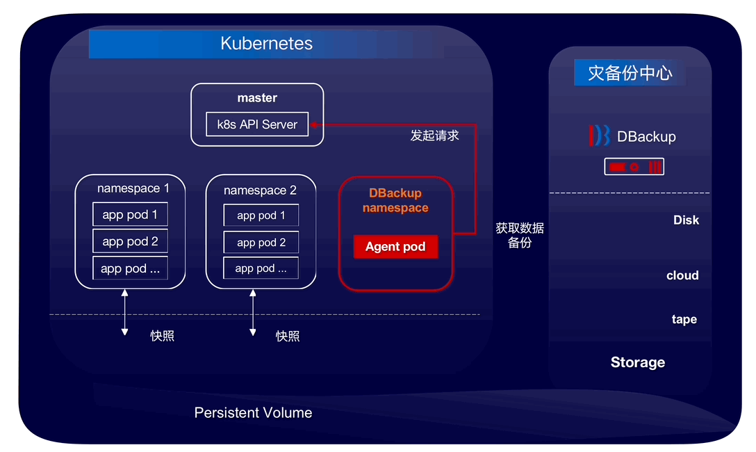 新版 DBackup 推出以應用為中心的 Kubernetes 數據保護方案,采用云原生非侵入式部署方式,支持 K8S 應用(Namespace、Workloads)和數據的一致性備份和恢復,為混合、多云環境提供企業級保護。